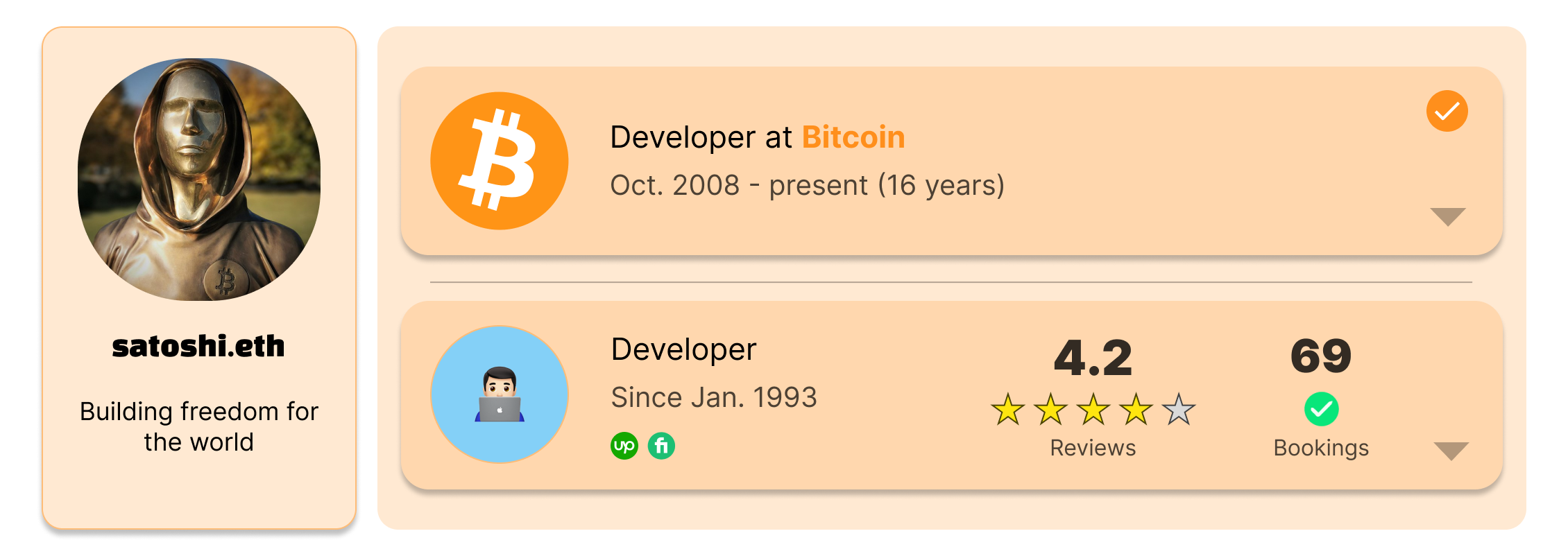 Para ser más gráfico, un freelancer podría reunir todo su historial reputacional de diferentes plataformas y tener todos esos datos en su poder, pudiendo demostrar su propiedad. Las contrapartes pueden verificar fácilmente quién validó sus experiencias, quién los calificó, y decidir si confían o no en esos terceros. Todo esto sin la necesidad de un intermediario de confianza ni de revelar su género, nacionalidad, nombre y apellido de nacimiento, o identificación gubernamental (parámetros de identidad tradicionales), lo que significa un reequilibrio del poder. Con esta identidad laboral, podrían conectarse en todos los sitios a lo largo de internet, ya sean redes sociales, bolsas de trabajo, marketplaces de servicios, billeteras, etc.